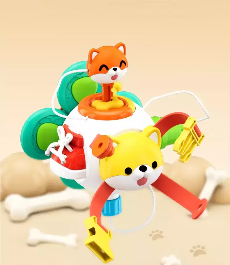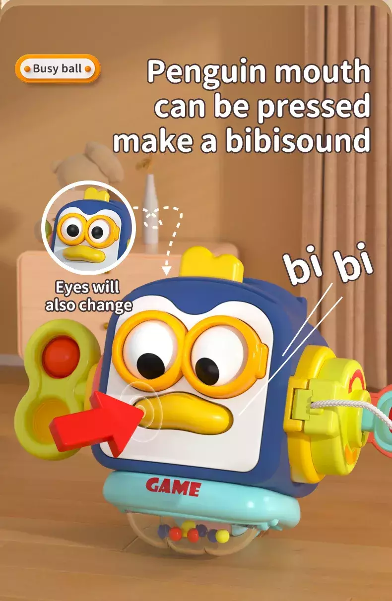 * 10-in-1 Montessori Fidget Toy: This Montessori toys includes 10 funny activity panels includes rotating steering wheel, spinning spinner, analog plug, fun switches, flight simulation accelerator, simulated gear rotation, portable wristband clasp, key pairing and happy gopher.